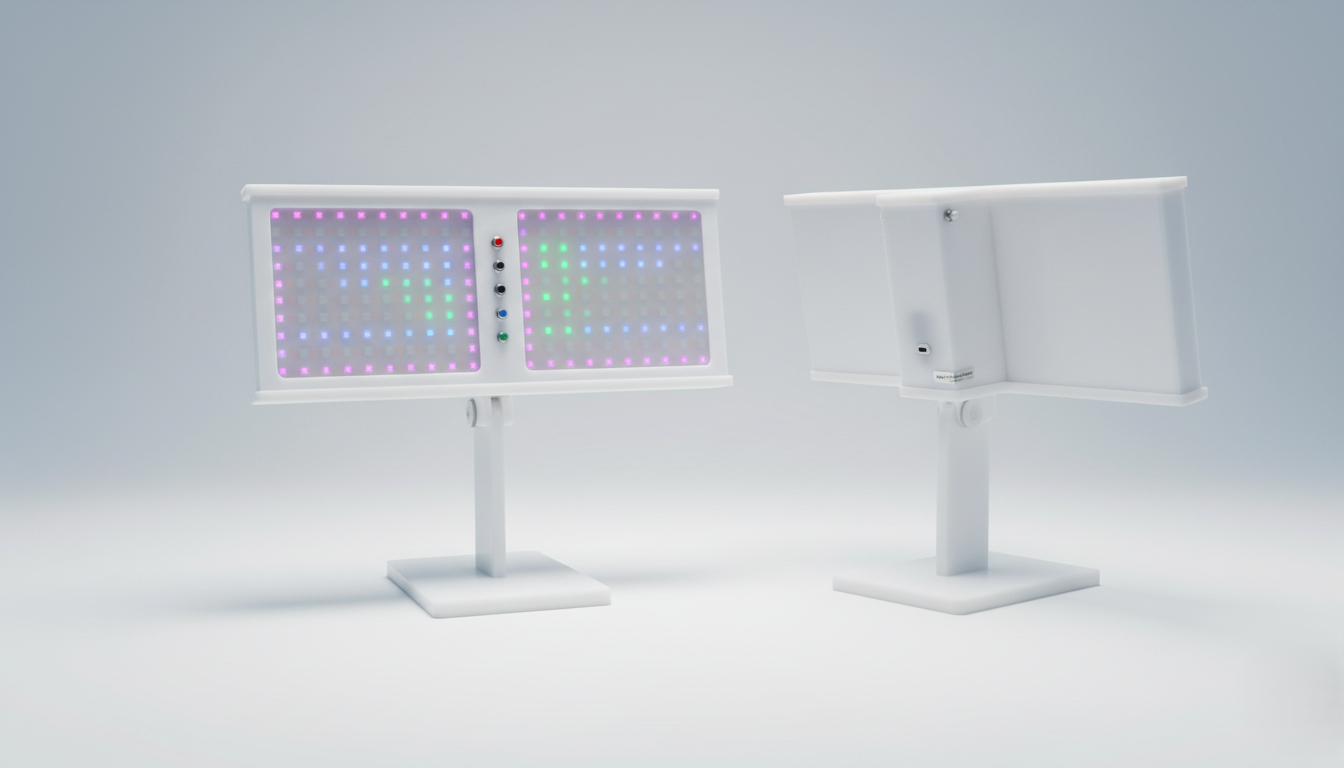 «Веселка Про» — апарат для динамічної офтальмохромотерапії (світлолікування), призначений для профілактики та лікування широкого спектра офтальмологічних захворювань. Підходить для використання в медичних закладах і в домашніх умовах за рекомендацією лікаря. Оснащений світловою матрицею з 8 терапевтичних кольорів, працює від безпечного живлення 5В через USB Type-C та забезпечує рівномірний і контрольований вплив на зорову систему.