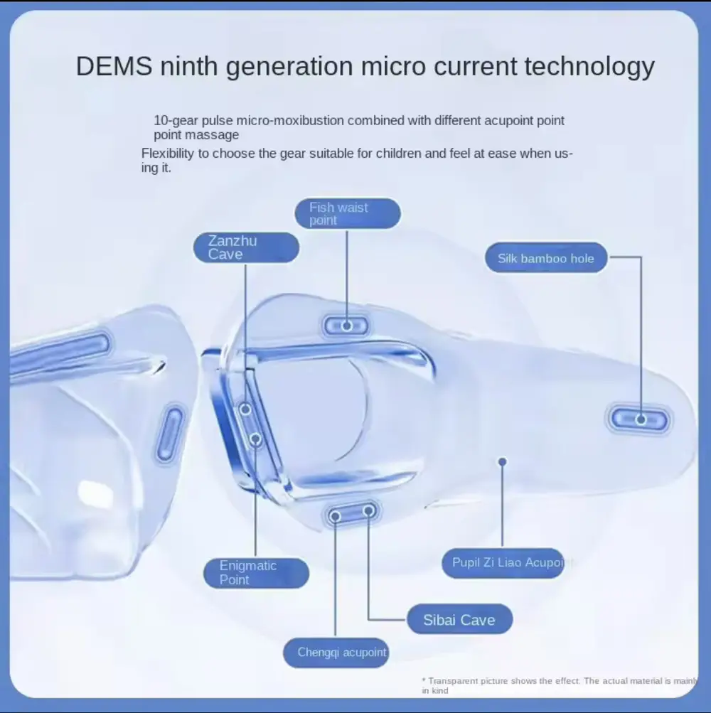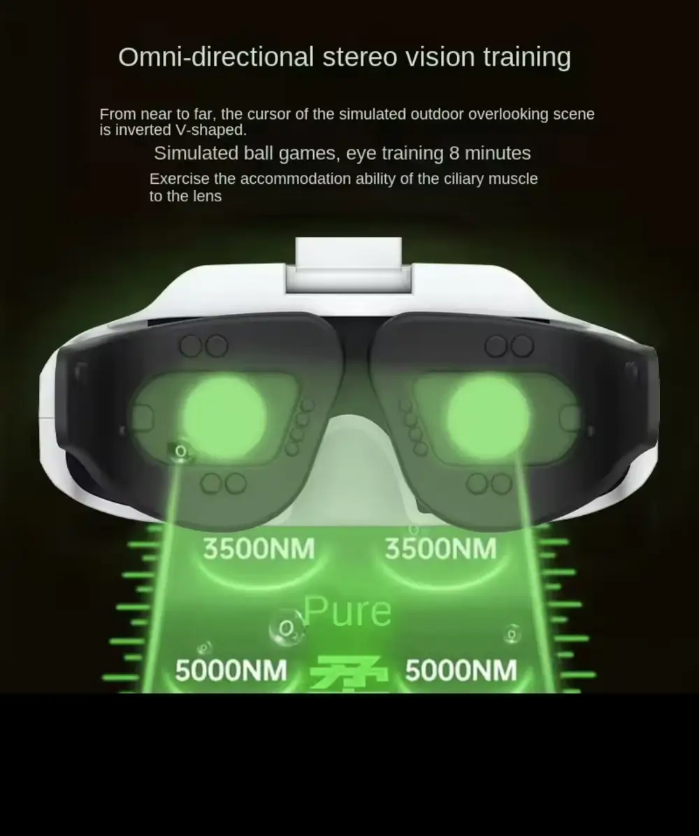 Даний апарат призначений для реабілітаційного тренування зору та догляду за очима з використанням методів цифрової акупунктури, лазерного акупунктурного випромінювання та зорового тренінгу. Пристрій поєднує кілька функціональних режимів, що дозволяє комплексно впливати на зорову систему при втомі очей, дискомфорті, сухості, болю, набряках та зниженні зорового комфорту, зокрема у підлітків.