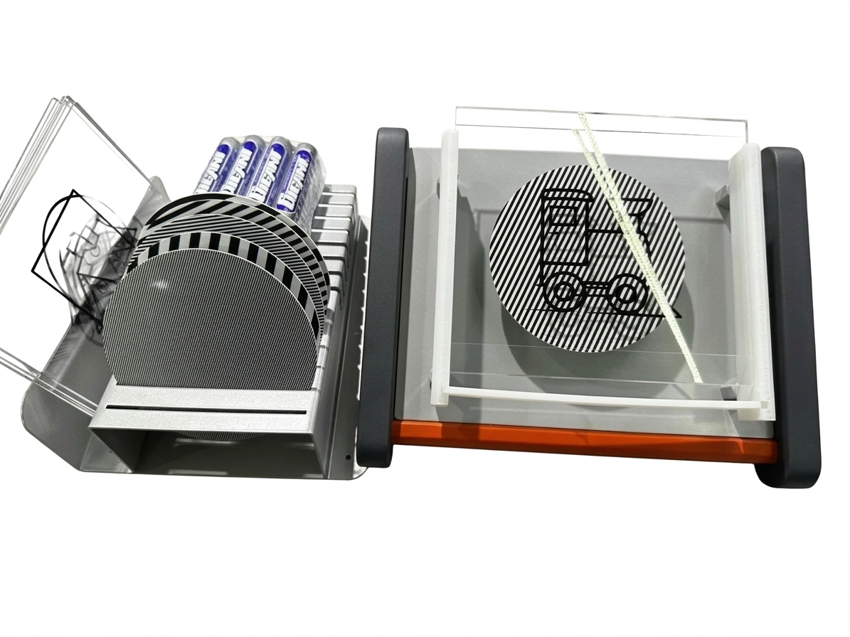Прилад SW-1 складається з міцного корпусу, набору дисків зі смугастими візерунками, комплекту слайдів, набору кольорових маркерів, що легко стираються, а також мережевого адаптера живлення. Робоча площина стимулятора являє собою фон, на якому розміщується круговий тест з висококонтрастними смугами, поверх якого встановлюється відповідний слайд.